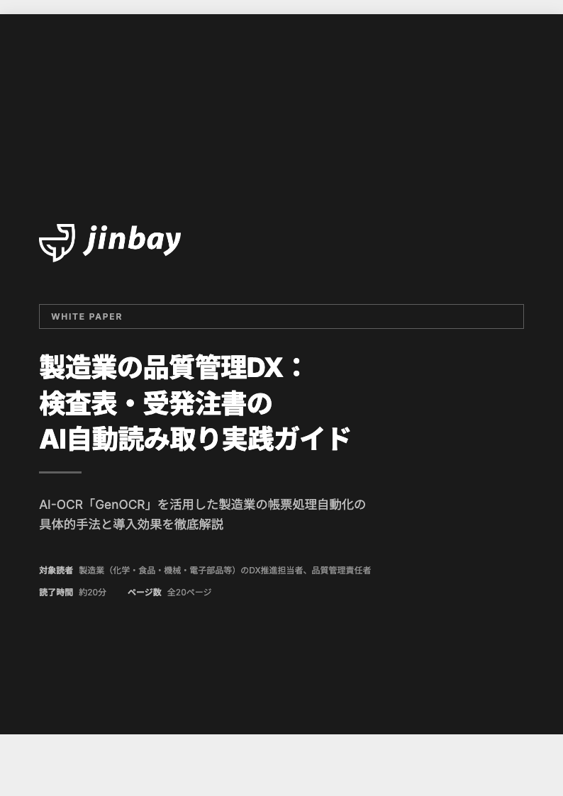 手書き対応・設定不要・品質管理システム連携まで、GenOCRが製造業の帳票処理を完全自動化します。